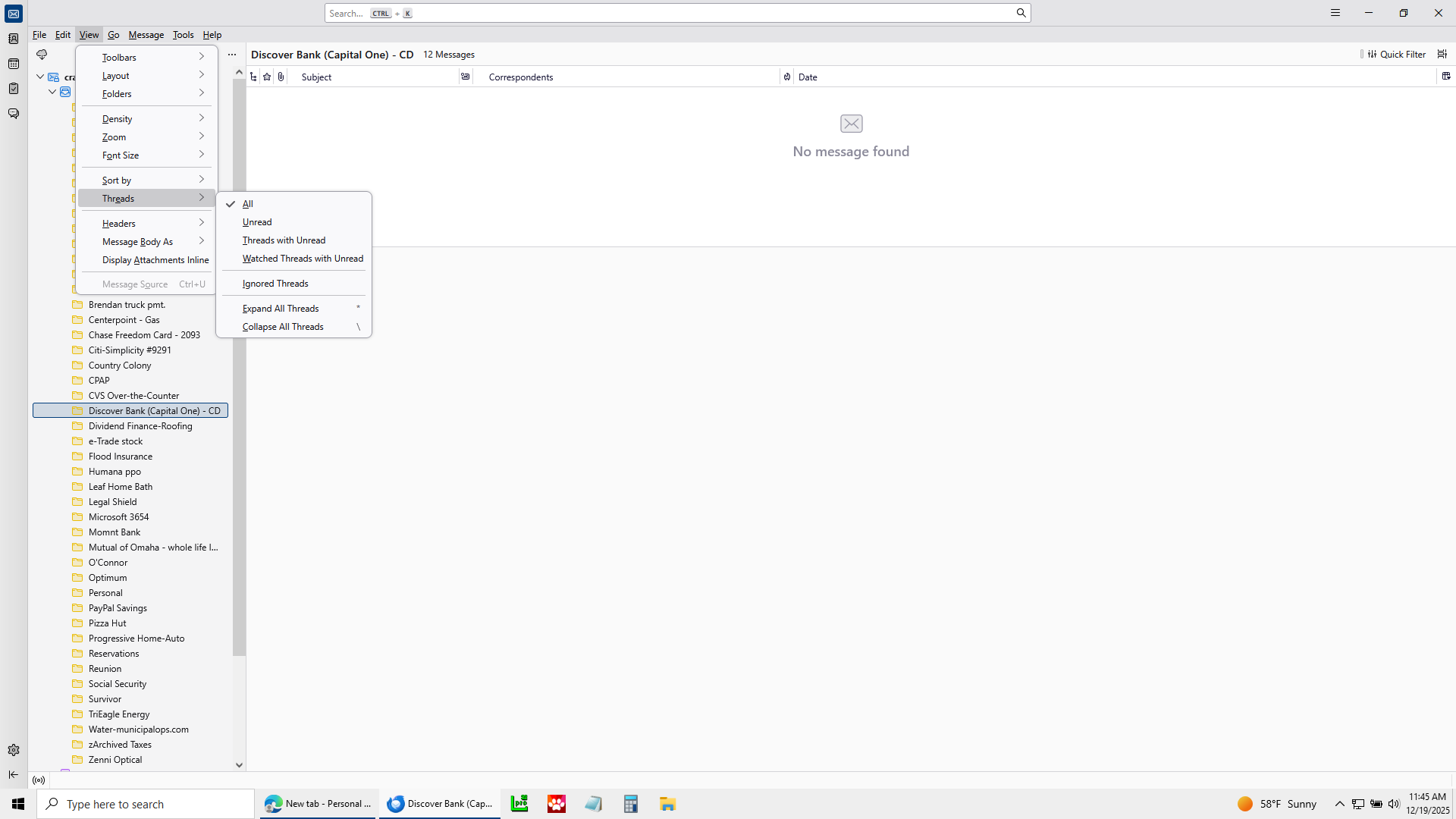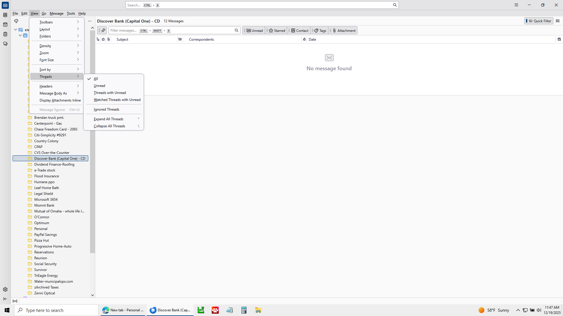 After Thunderbird Update, one of my Subfolders shows 11 emails existing in folder but there's no actual emails showing.
