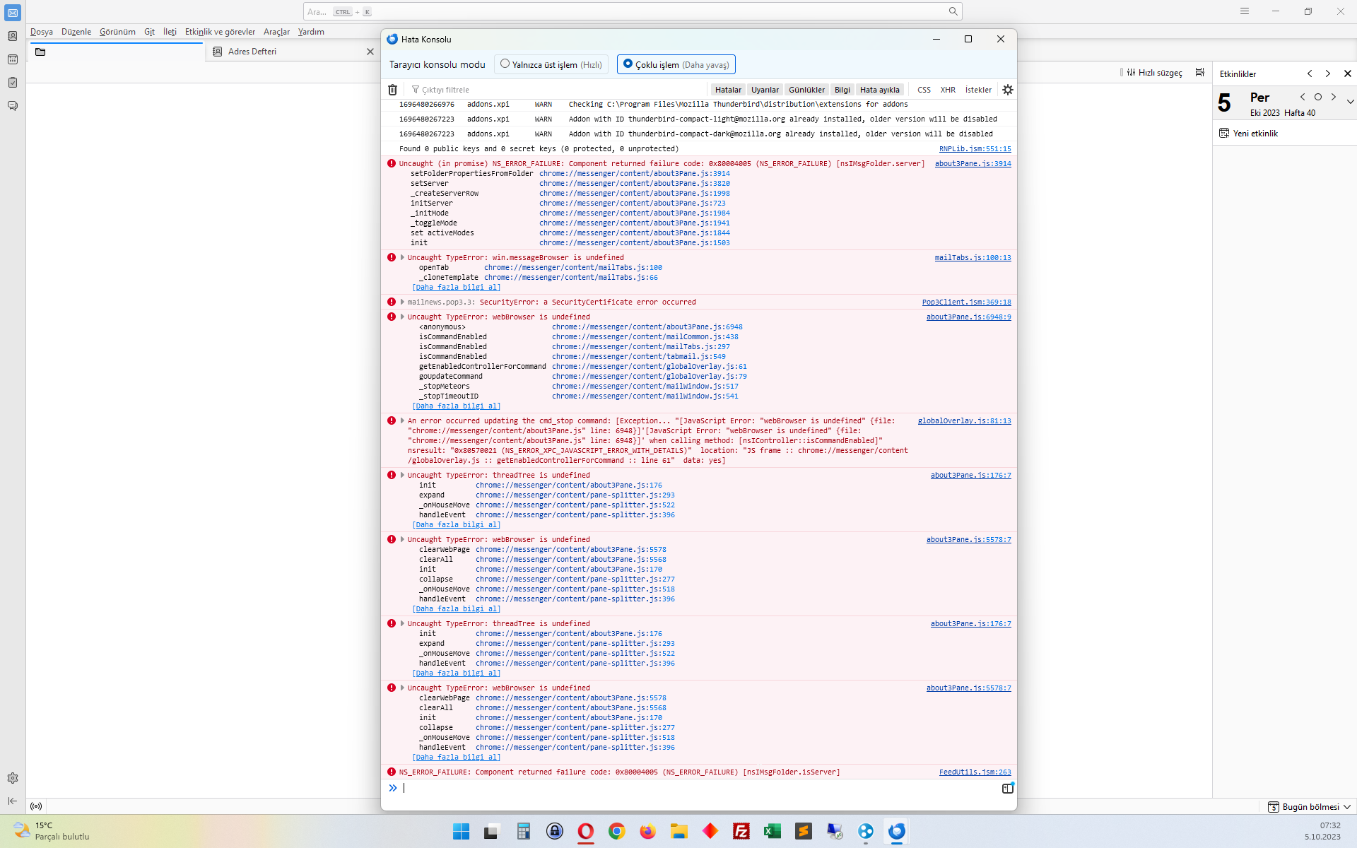 After thunderbird update my email panel not work. I can't see any folder or email. SS is atached which is show errors.